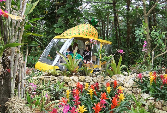 パイナップルや南国植物が広がるテーマパーク。南国ムードを満喫でき、子どもから大人まで楽しめます。
